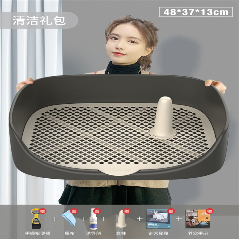 狗厕所小型犬大号大型犬防踩屎自动中型狗狗用品狗尿便盆宠物冲水 极简风-黑色大号-清洁礼包