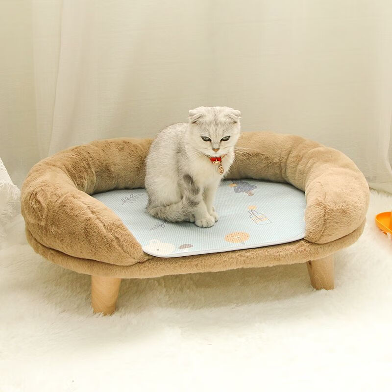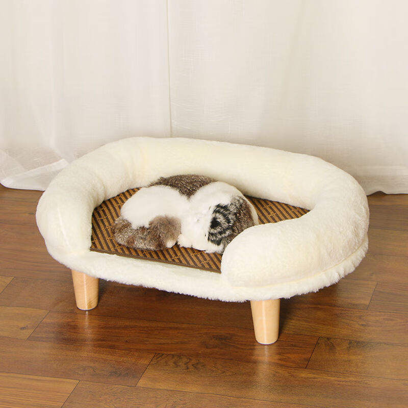 ABDT猫窝狗窝四季通用宠物睡垫沙发冬季保暖猫咪床垫子狗狗睡觉床 单层-白色 含1张藤编凉席垫 S-小型(外径50x38x21cm)