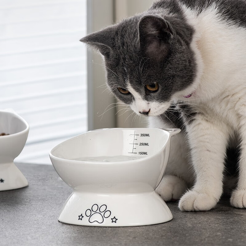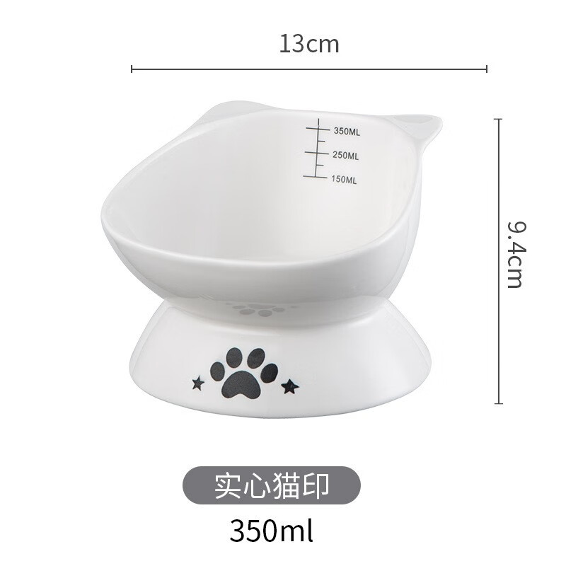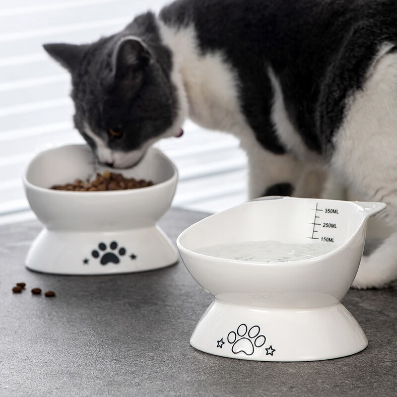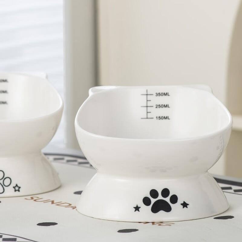 拓咏恒大猫日记猫碗陶瓷双碗猫食盆宠物狗粮碗高脚斜口护颈防打翻猫咪黑 白色大号(粮600ml/水400ml)