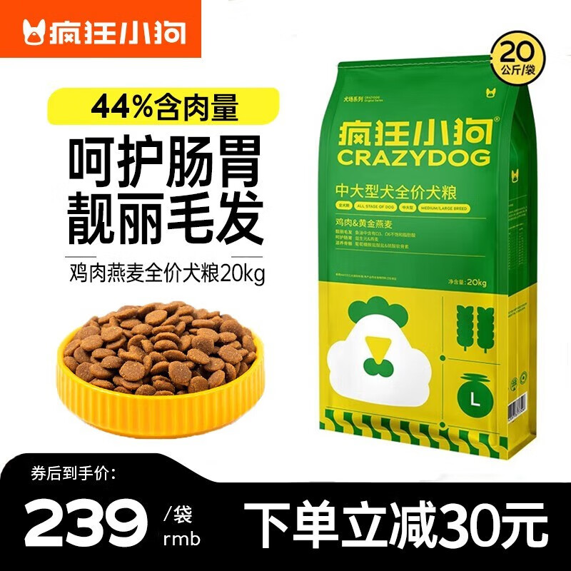 疯狂小狗狗粮金毛边牧拉布拉多中大型犬幼犬成犬鸡肉燕麦通用全价狗粮 【呵护肠胃】鸡肉燕麦20kg