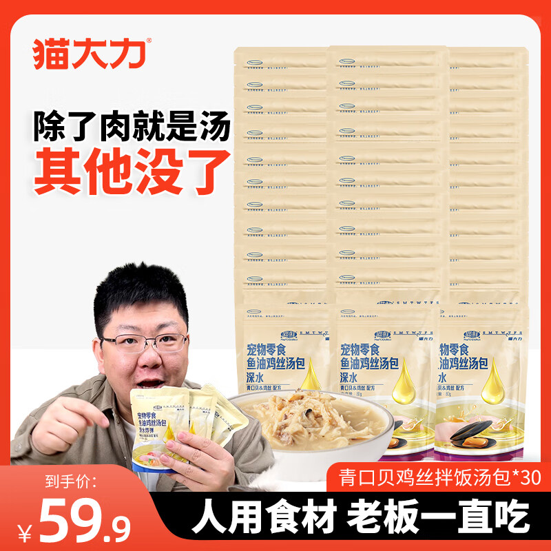 猫大力猫咪零食补水汤包猫粮猫罐头幼猫成猫增肥猫条湿粮主食猫饭 青口贝鸡丝拌饭汤包*30
