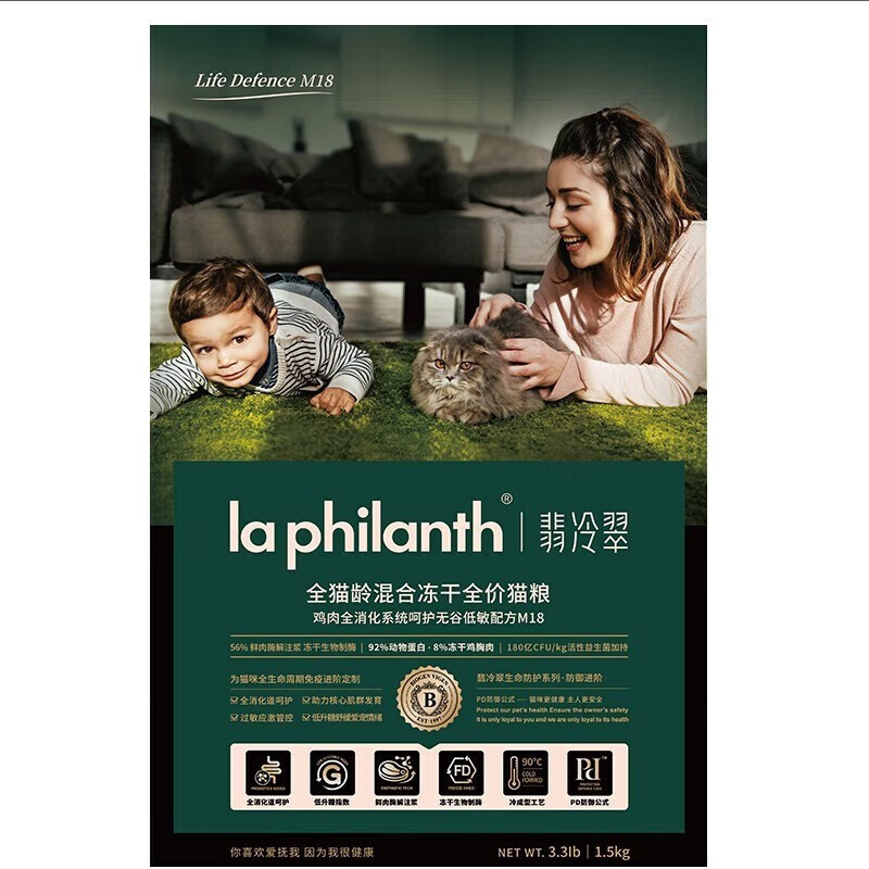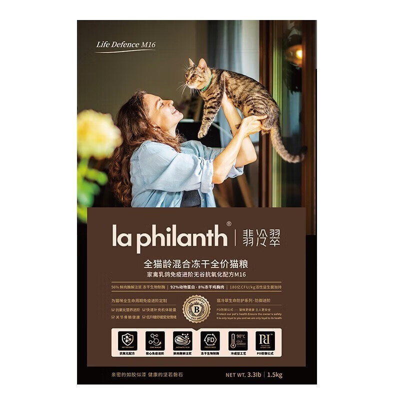 翡冷翠猫粮生命防护鸡肉无谷无豆成猫幼猫奶糕全期全价全猫种猫粮 M16家禽乳鸽全猫配方 1.5kg包装