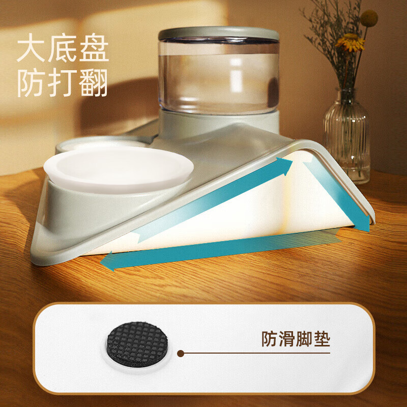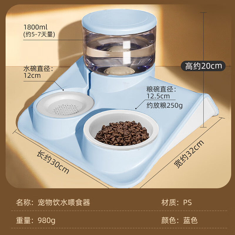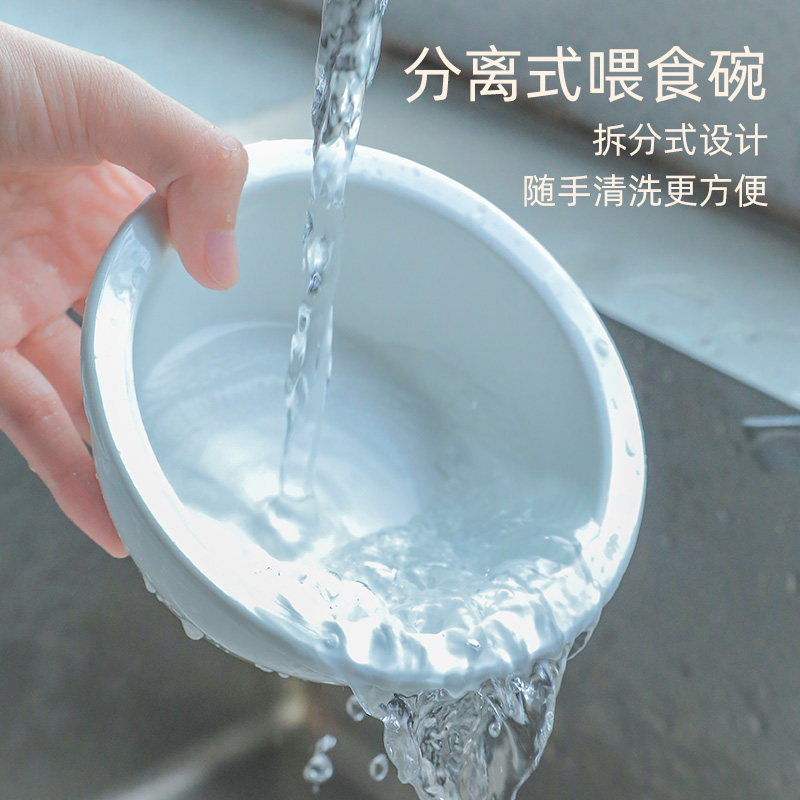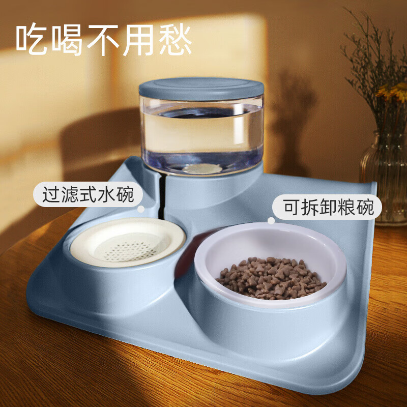 HOOPET猫碗猫咪自动喂食器饮水机喂粮投食猫食碗饭碗水盆宠物狗狗饮水器双碗防打翻盆吃饭喝水一体用品 喂食喂水过滤双碗-蓝【陶瓷碗】
