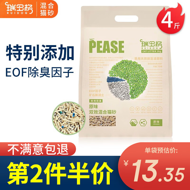 瑞多格 豆腐猫砂除臭无尘猫沙活性炭混合砂2mm 【店长推荐】原味混合猫砂2kg