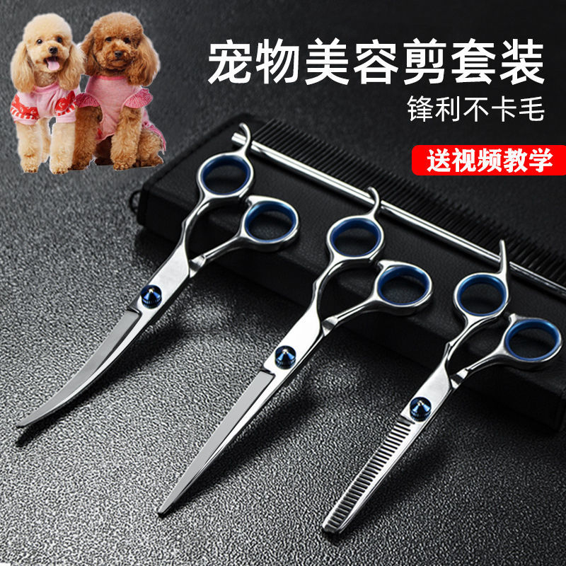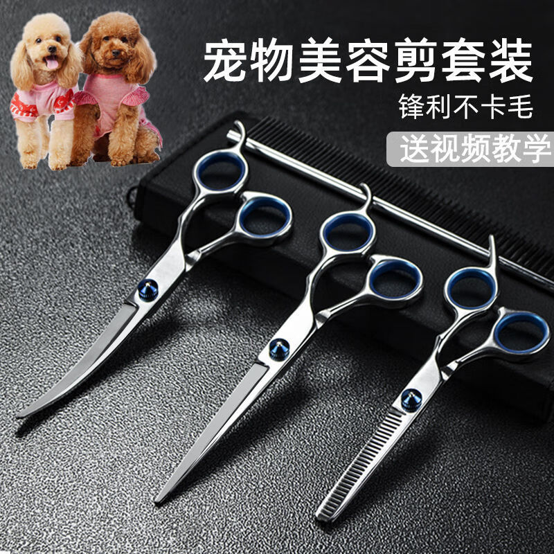 狗狗剪毛宠物狗美容剪刀小狗泰迪狗毛弯剪修毛工具套装 直剪 上翘 下翘 包 排梳