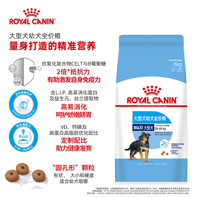 皇家(ROYAL CANIN) 皇家狗粮 大型犬幼犬 成犬狗粮 全价粮 营养均衡 支持抵抗力 MAJ30大型犬幼犬2-15月 15kg