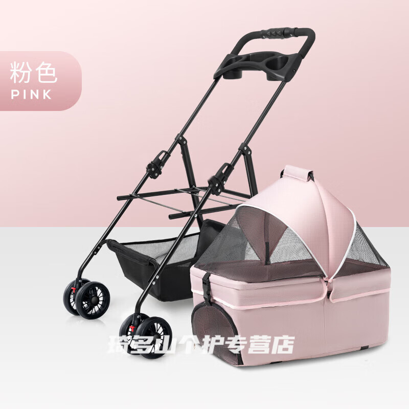 酷奇宠jardkids宠物推车遛狗狗猫咪手推车外出小型宠物车轻便可分离折叠 LC01樱花粉【提篮可分离】 承重