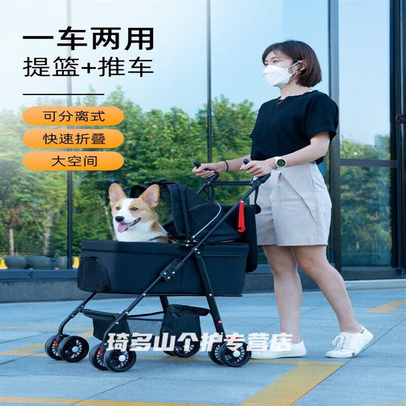 高档POPO轻便可折叠狗狗手推车宠物猫咪外出遛狗婴儿老年柯基中小