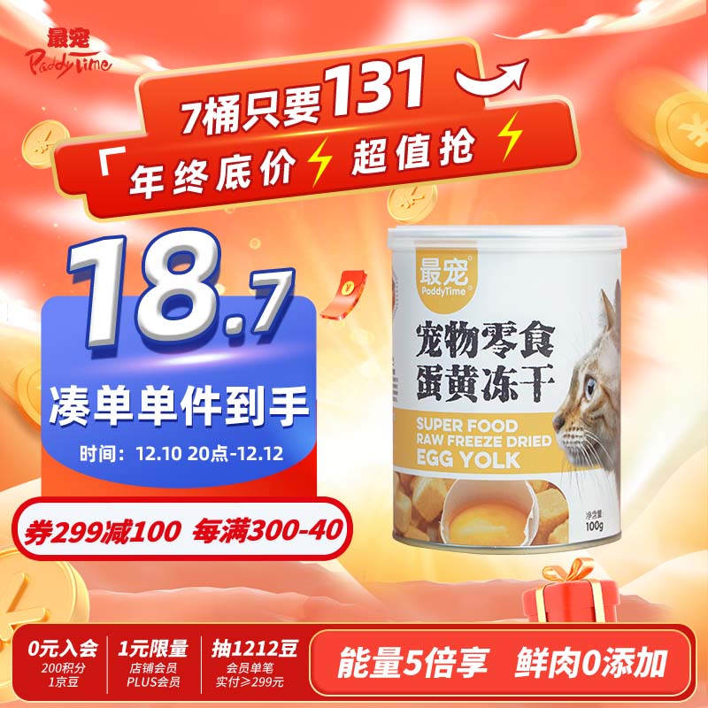 最宠(Paddy Time)猫零食无添加纯蛋黄粒冻干100g卵磷脂宠物成幼猫粮食品肉干狗零食