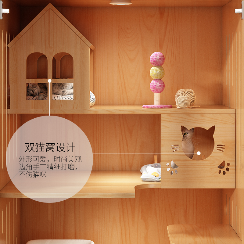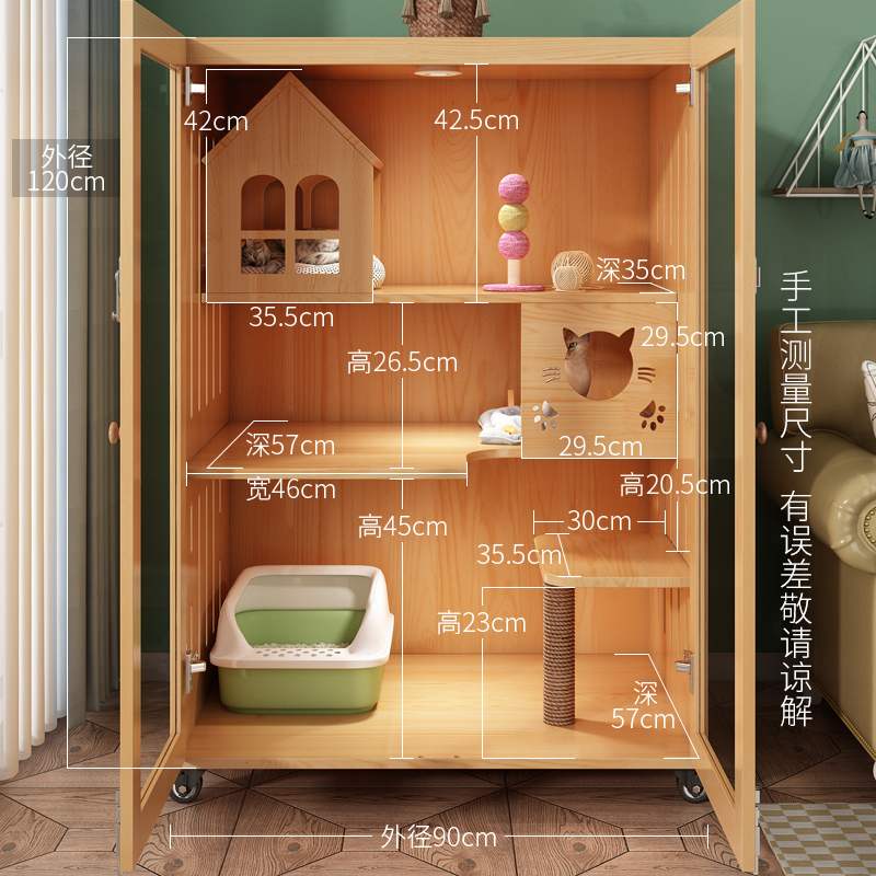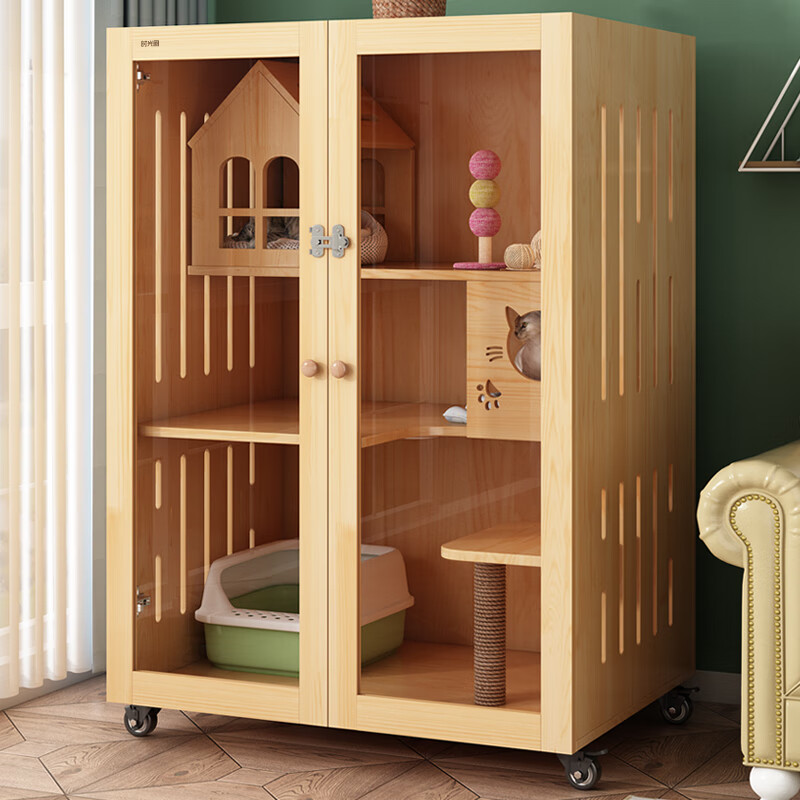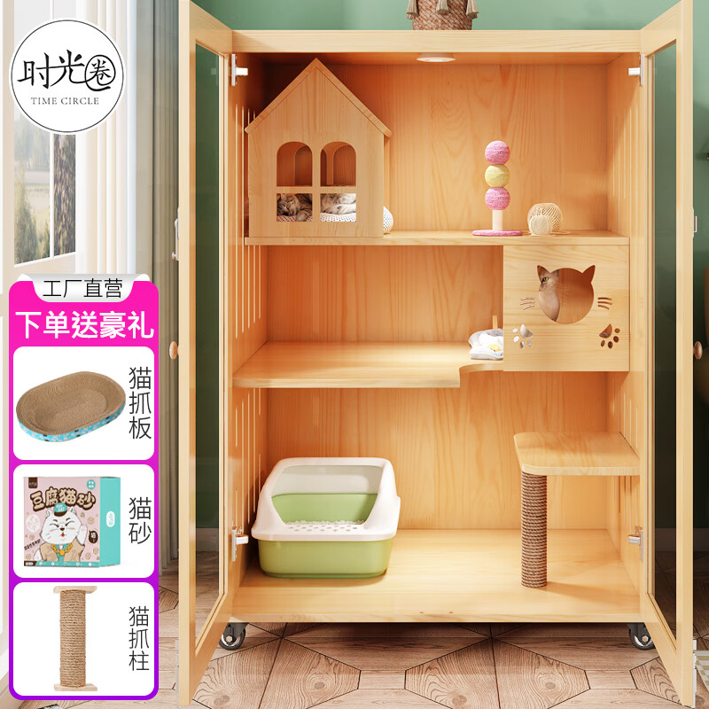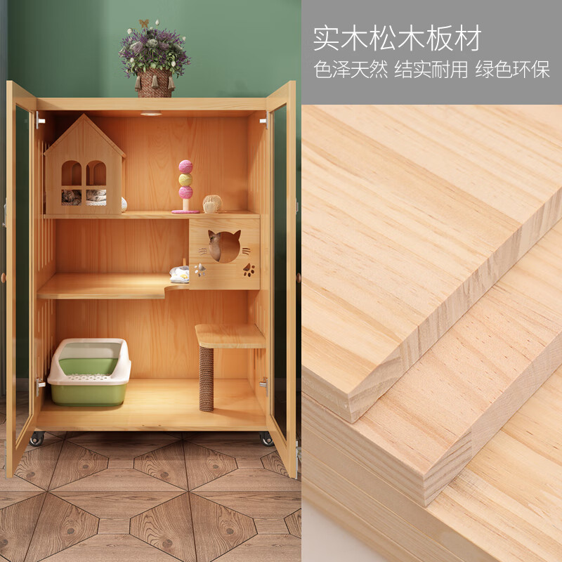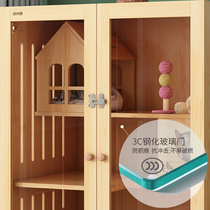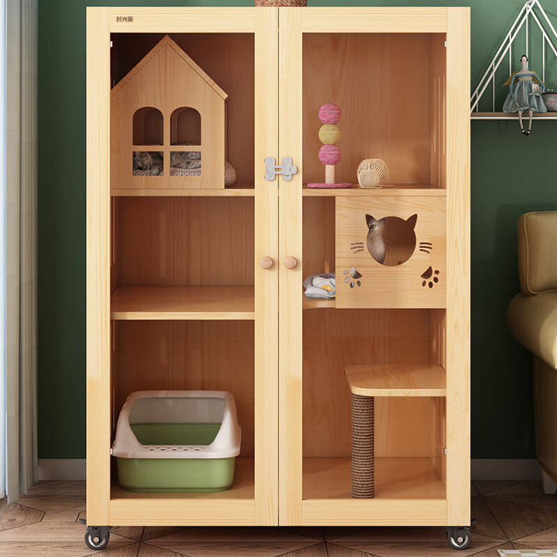 时光圈猫笼猫窝实木猫别墅猫笼子猫柜子猫咪宠物房屋120*90*60SM-G1296E