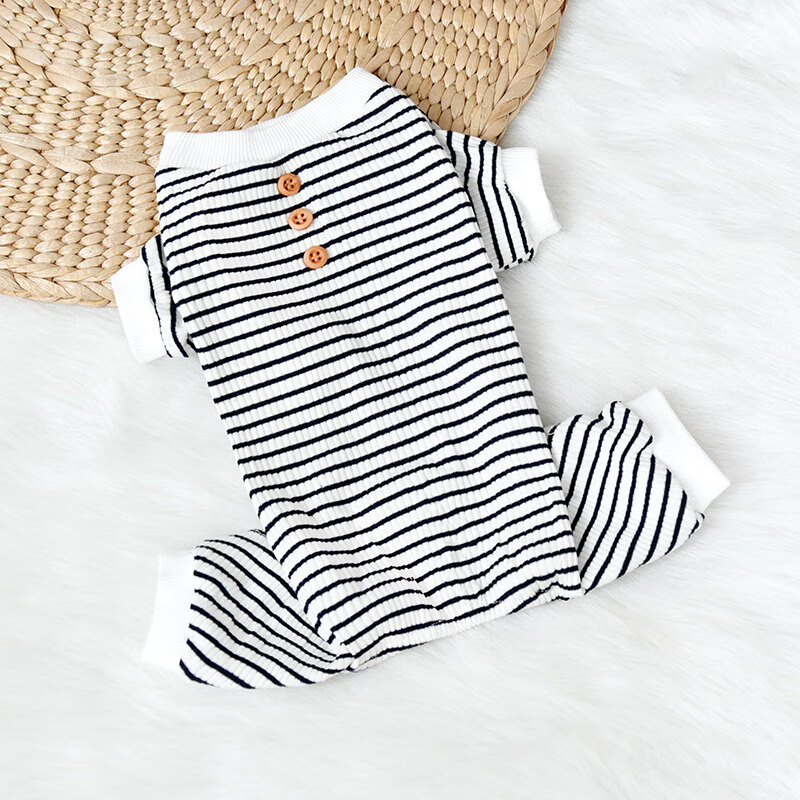 狗狗衣服 春季狗狗睡衣 毛衣泰迪小型犬比熊吉娃娃连体睡衣家居服宠物保暖加厚狗狗猫咪衣服 三排扣藏青睡衣【全棉】 XXL码【建议12-14斤】
