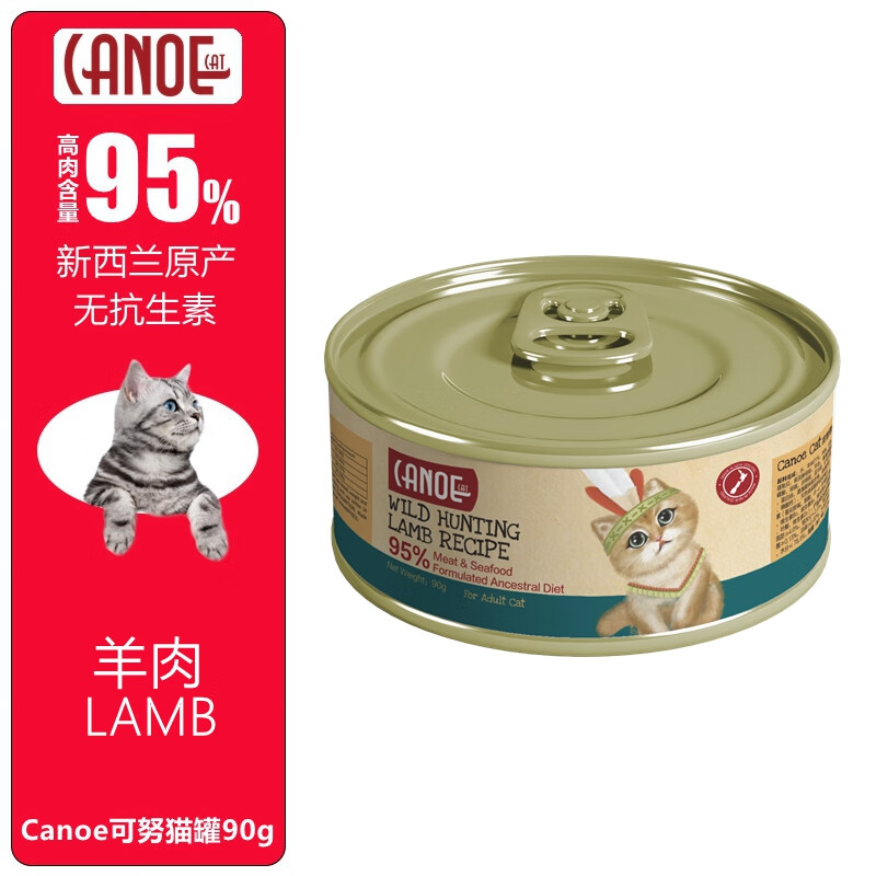 可努猫Canoe cat猫罐头新西兰进口无谷高肉含量猫咪增肥发腮宠物零食湿粮成猫幼猫通用全价主食罐 可努猫Canoe Cat 羊肉猫罐90g*1