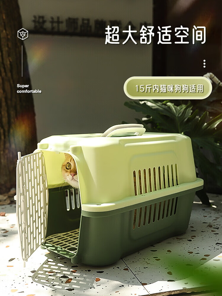 贞宠宠物航空箱外出便携猫咪运输托运太空箱车载狗笼子小型中型犬专用 【升级加固】 森野绿-塑料门窗款 犬猫通用 自在出行