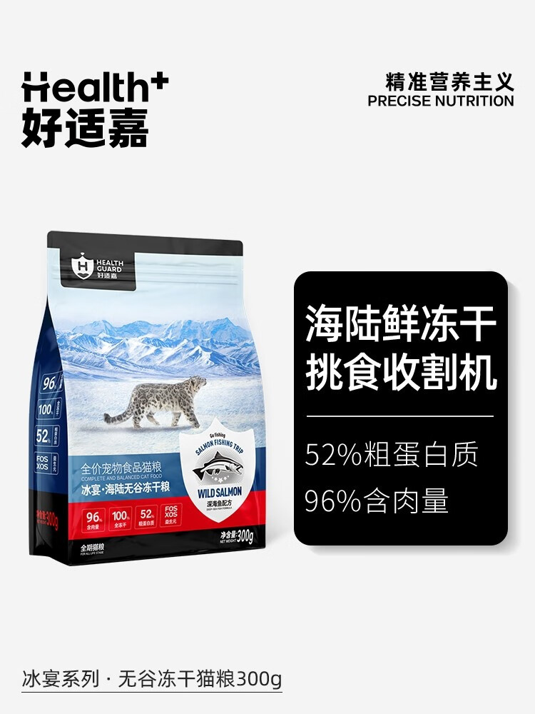 好适嘉(HEALTH GUARD)冰宴猫粮 海陆鲜肉纯猫咪冻干粮 96%肉原料 52%动物蛋白 生骨肉冻干 330g