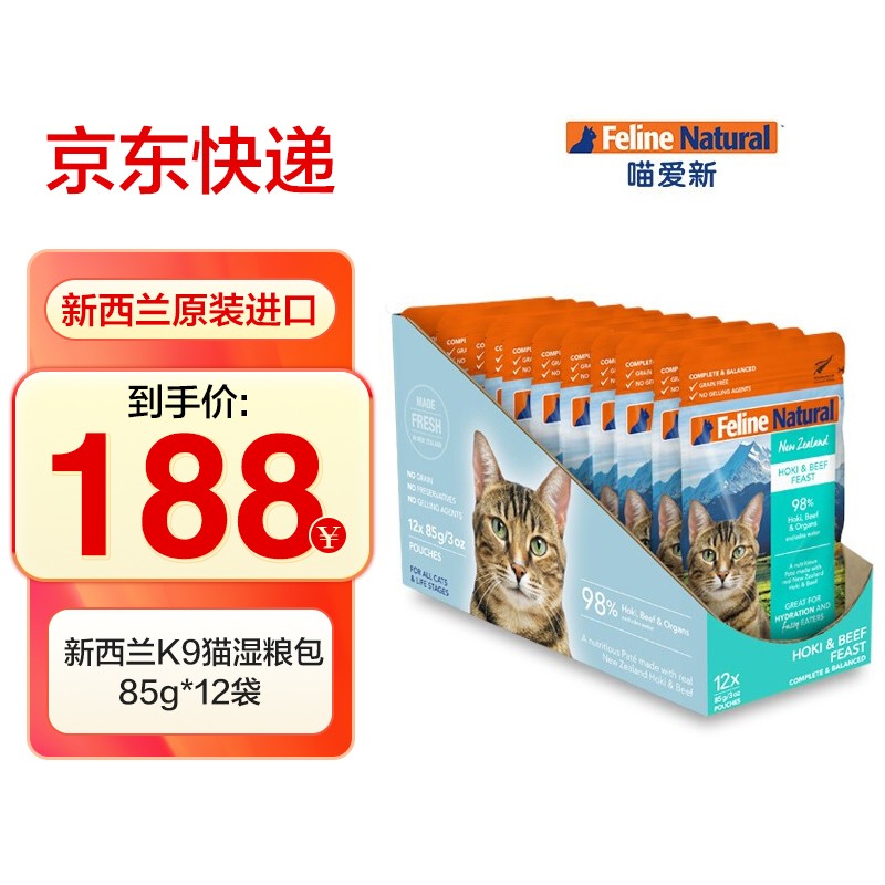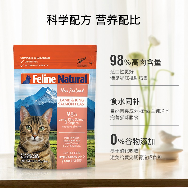 K9 Natural 猫粮 宠物猫零食猫湿粮包85g*12 新西兰原装进口猫咪营养拌饭主食猫罐头 羊心帝王鲑85g*12