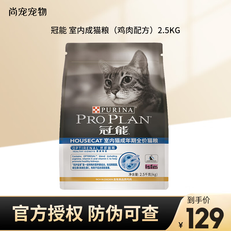 冠能(PRO PLAN)猫粮2.5kg 成猫幼猫全价猫粮 全阶段主食猫干粮 【室内成猫】2.5kg(鸡肉配方)