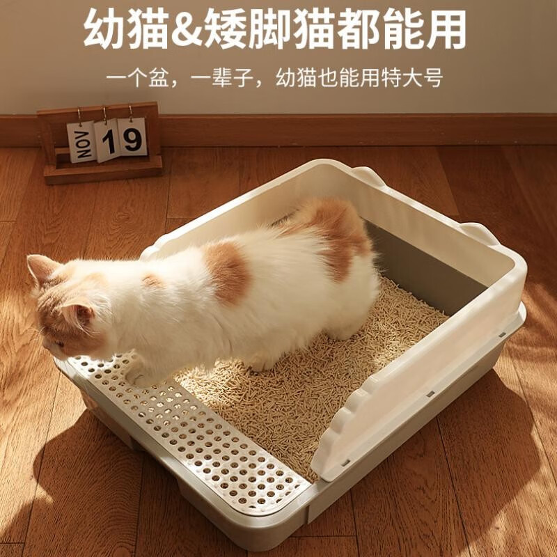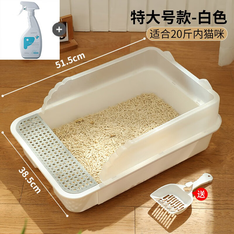 KimPets猫砂盆半封闭式防带砂猫厕所猫咪用品幼猫屎盆超大号隔臭便盆 白色特大号 除臭祛味喷雾 无规格