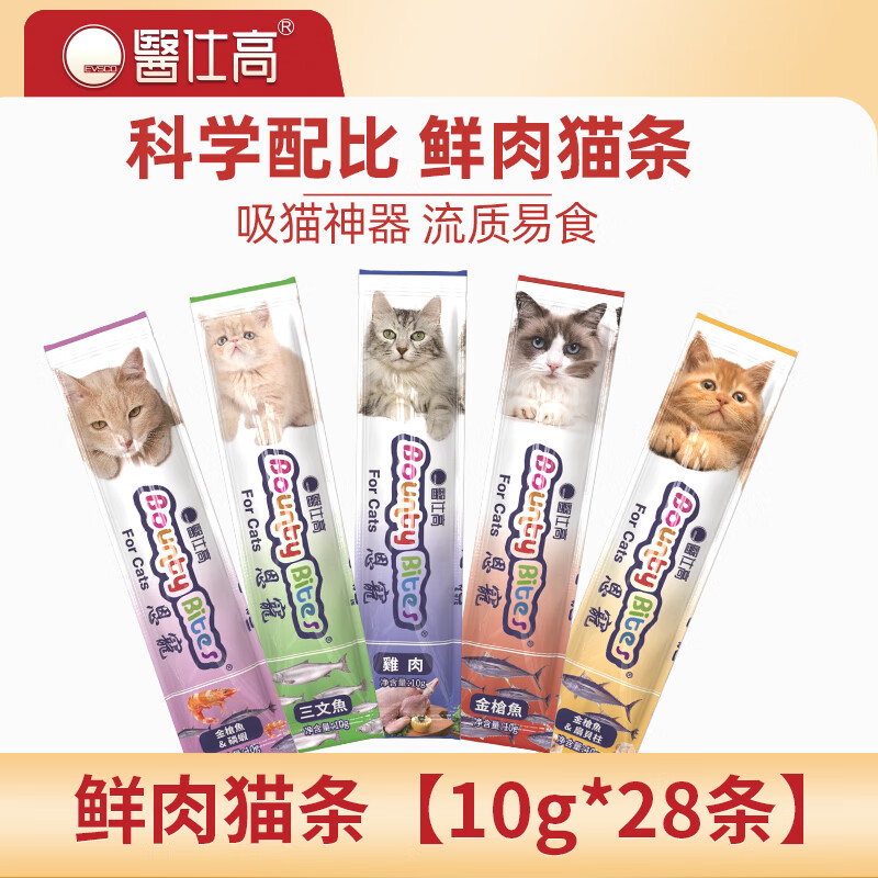 医仕高猫条奖励零食营养补充湿粮罐头补水成幼猫咪互动肉泥混合口味 【10g*28条】 三文鱼