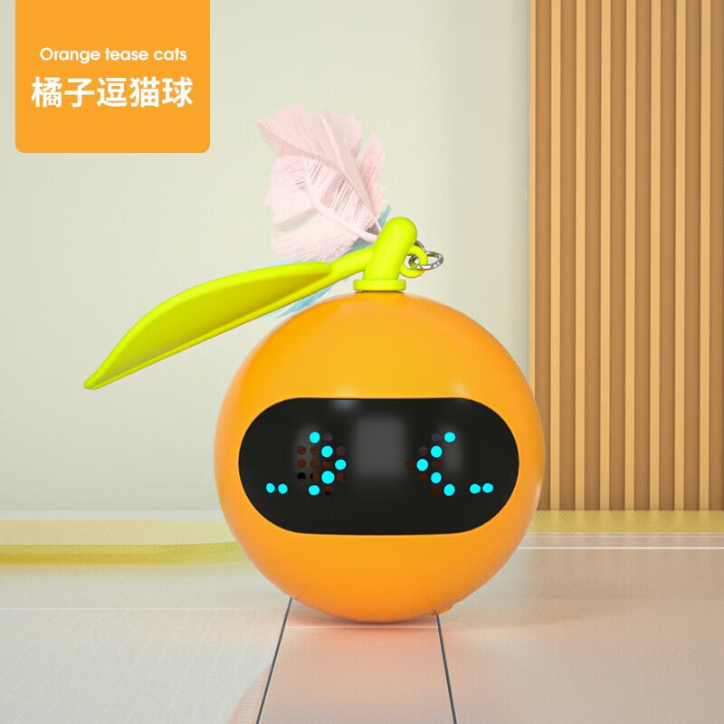 疯狂小狗 猫咪玩具电动自嗨解闷球逗猫棒羽毛激光灯神器宠物小猫猫用品 橘子智能魔球-基础款(羽毛 铃铛))