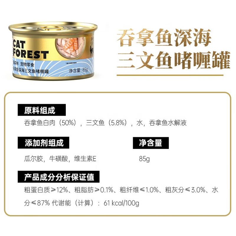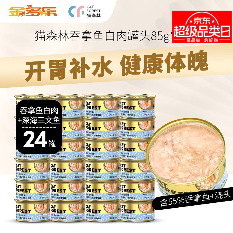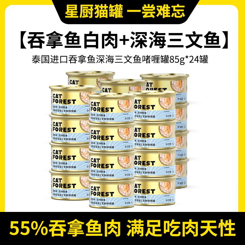 猫森林猫罐头原装进口白肉猫咪零食罐24罐成幼猫补水罐头整箱 吞拿鱼 三文鱼口味85g*24罐