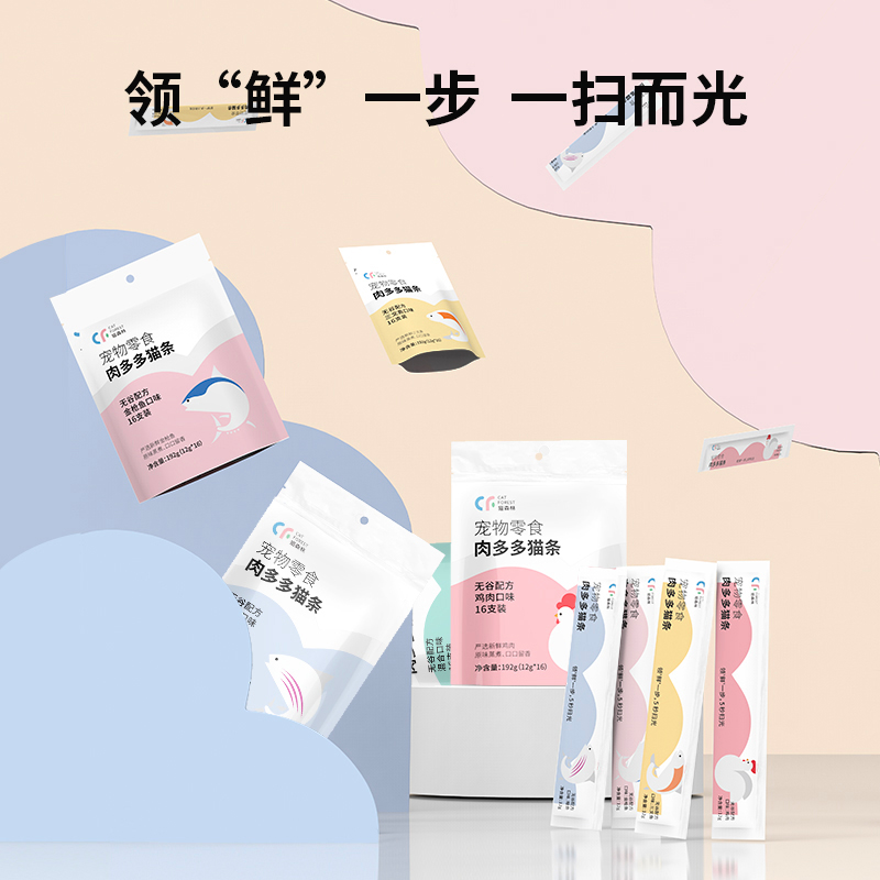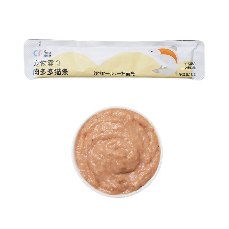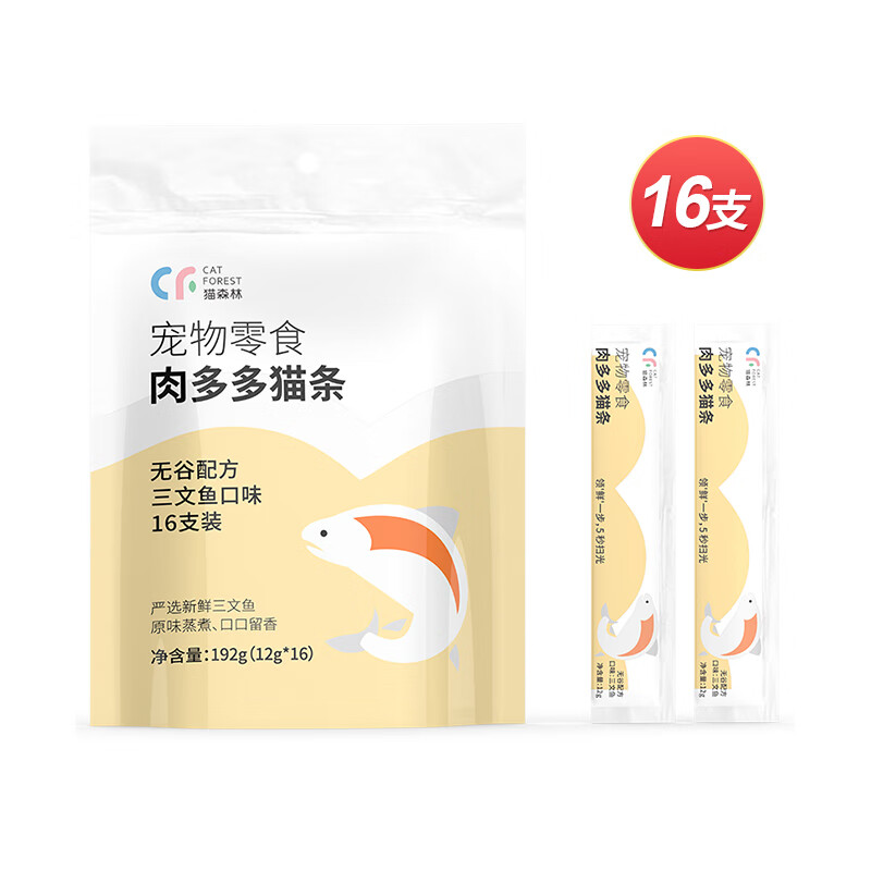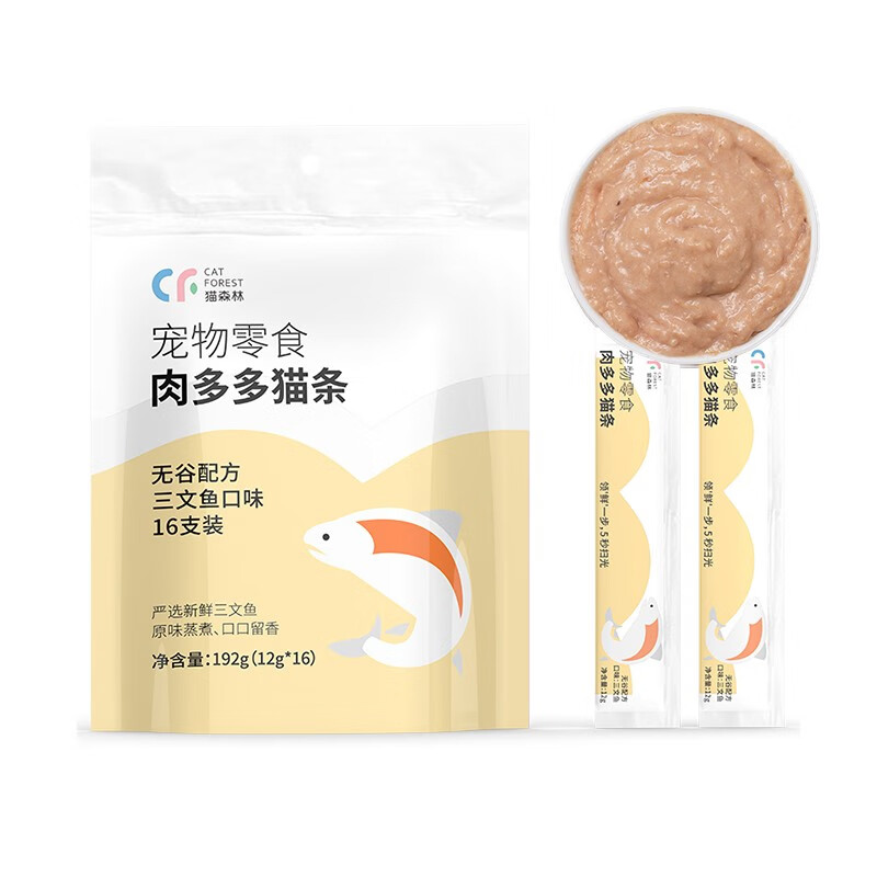 猫森林 肉多多无谷猫条 宠物猫湿粮流质食品 成幼猫零食 猫咪肉条营养布丁 鱼肉味 12g*16