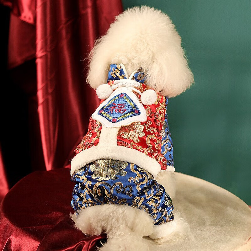 KimPets狗狗衣服冬季2023新年唐装衣服冬天冬装保暖棉加绒宠物加厚小型犬泰迪博美四脚外套 红福字(四脚装) XS(背长19cm胸围32cm)约适合2斤