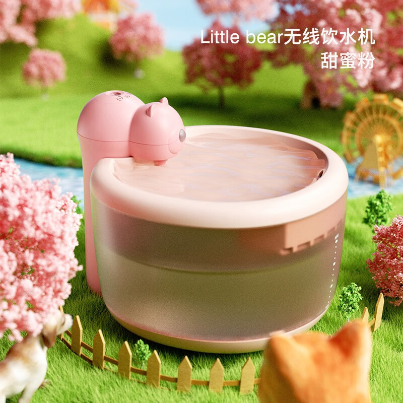 小熊猫咪饮水机循环流动过滤自动喂水神器无线智能感应宠物饮水机 小熊无线饮水机-甜蜜粉