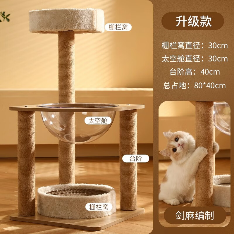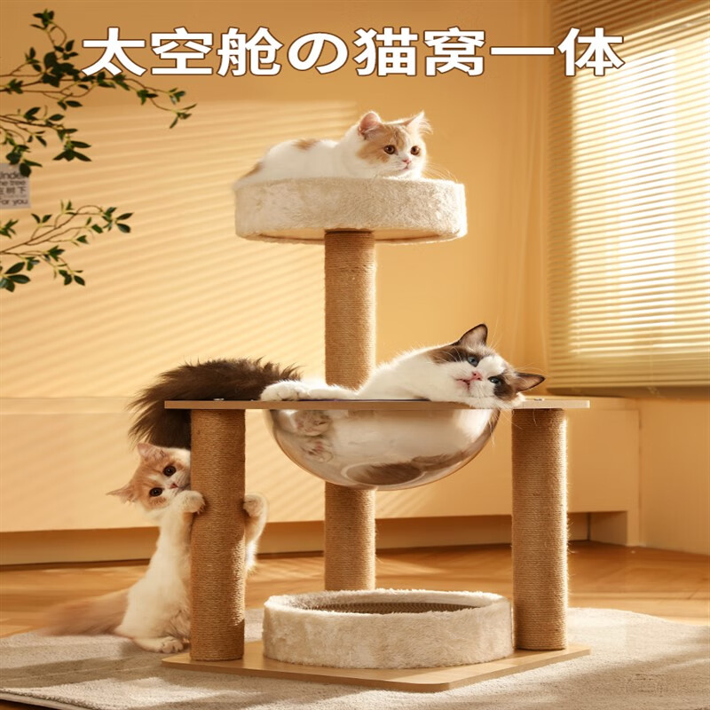 太空舱猫爬架猫窝一体猫咪磨爪爬高剑麻猫架柱子幼猫玩耍玩具用品 太空舱剑麻猫爬架睡眠款