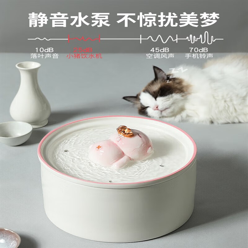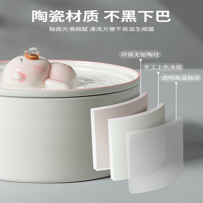 风宠猫咪饮水机陶瓷自动循环喝水碗流动水盆宠物饮水器喂水不湿嘴活水 【榜TOP1】猪猪款