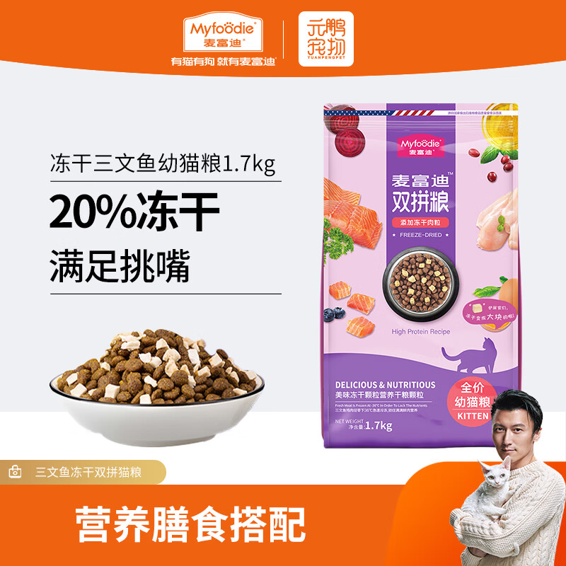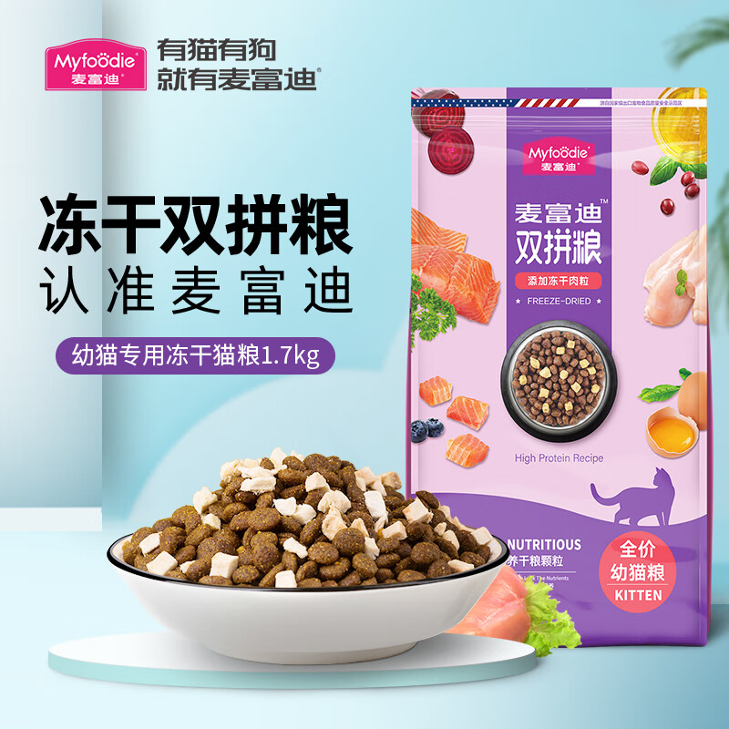 麦富迪冻干猫粮 美短英短美毛三文鱼冻干双拼粮 幼猫粮1.7kg【10月到期】