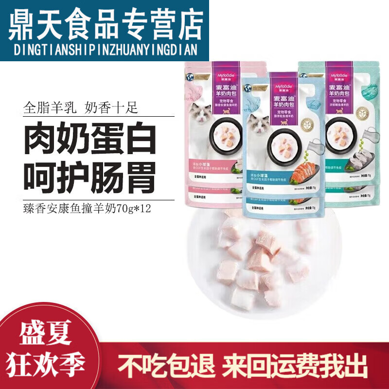 麦富迪(Myfoodie)麦富迪(MYFOODIE)猫湿粮羊奶肉粒包成猫幼猫软包猫罐头猫咪主食 臻香安康鱼撞羊奶 整箱70g*12