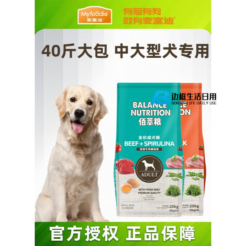 麦富迪(Myfoodie)狗粮 狗粮40斤装佰萃粮金毛拉布拉多专用犬粮旗舰店官方 0lb 【成犬专用 40斤】牛肉 螺旋藻