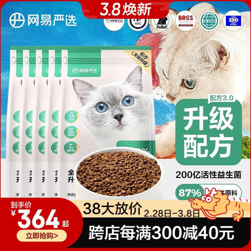 网易严选 全价猫粮 成猫增肥大规格营养猫粮 无谷全阶段猫咪食品 囤货装 【升级版3.0】囤货装5袋9kg