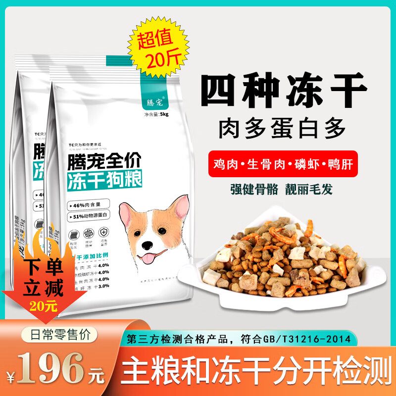 腾宠鸡肉冻干生骨肉五拼高鲜肉狗粮成犬幼犬粮通用型20斤高蛋白中大型 冻干狗粮10kg(5kg2袋)