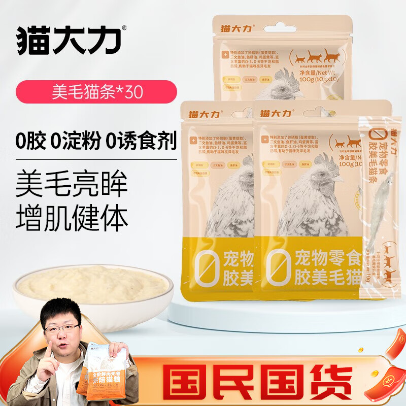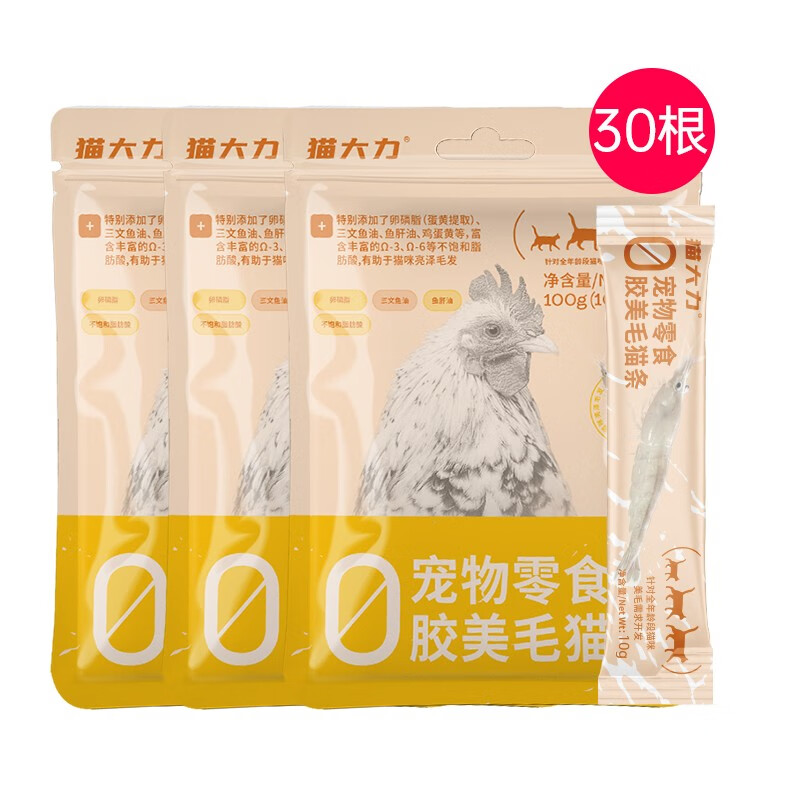 猫大力猫咪零食猫草猫条成幼猫补水猫条营养增肥小猫罐头妙鲜湿粮 美毛猫条*30
