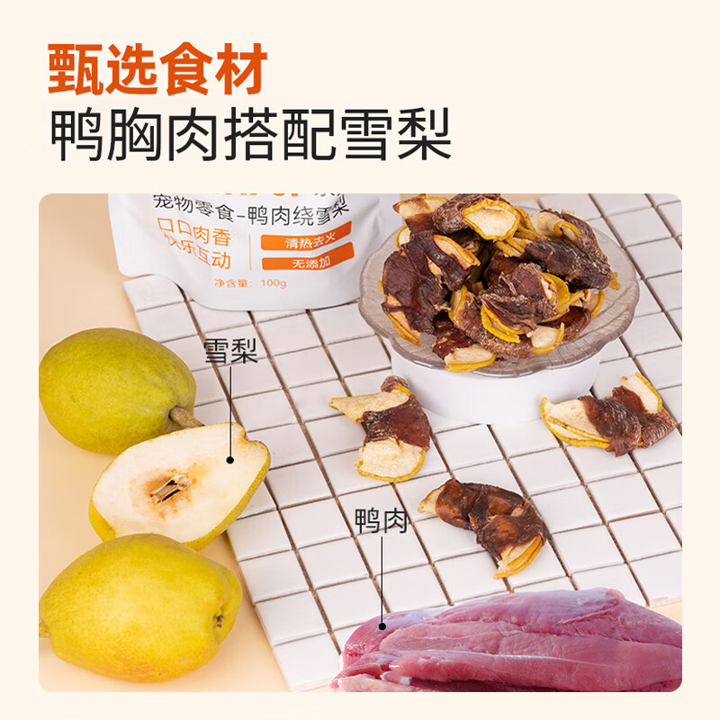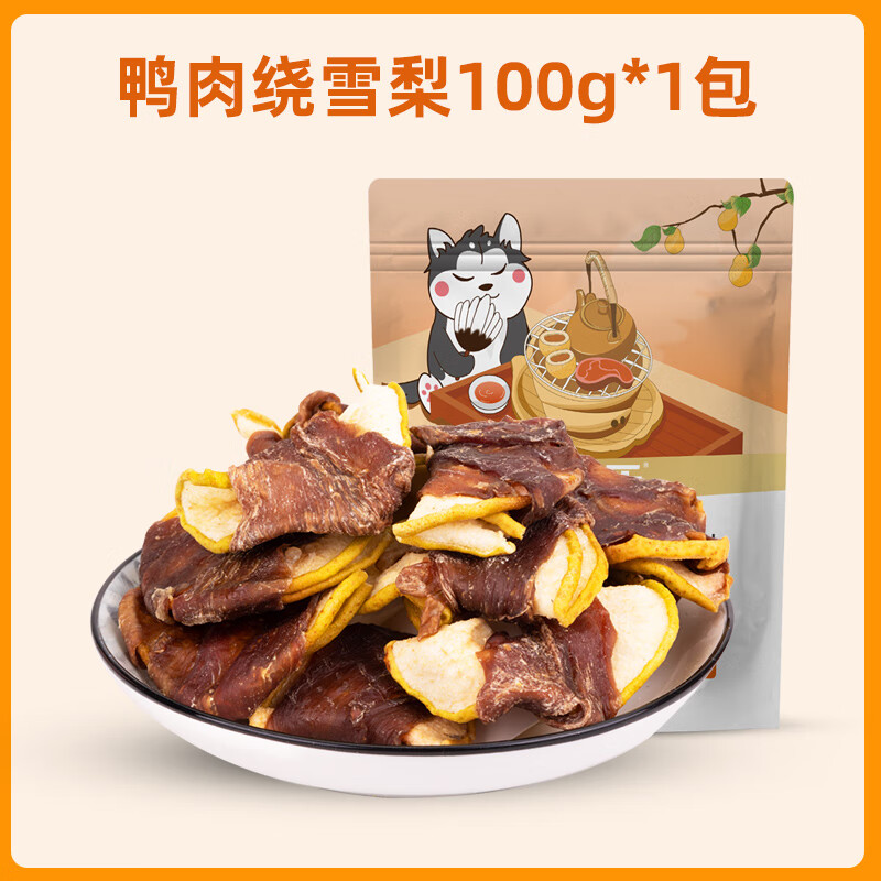 哆莫阳光(DUOMOYANGGYANG)狗狗零食鸭肉干绕雪梨中大小型犬泰迪金毛磨牙棒泪痕幼犬宠物零食 【清热降火】鸭肉绕雪梨100g 1包