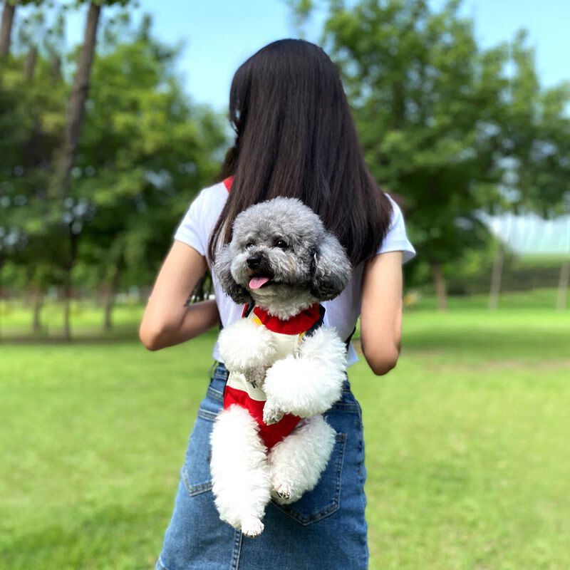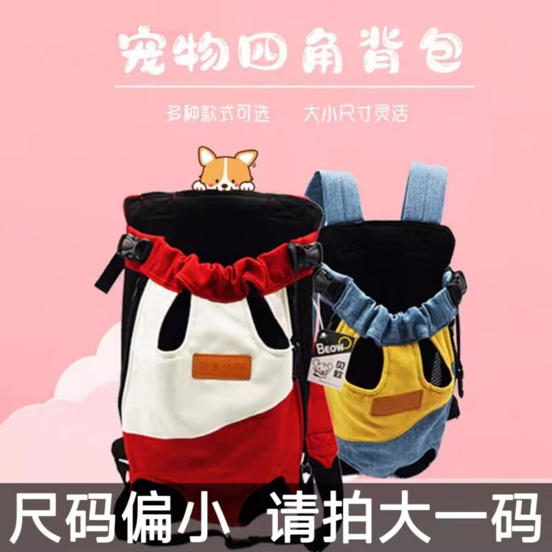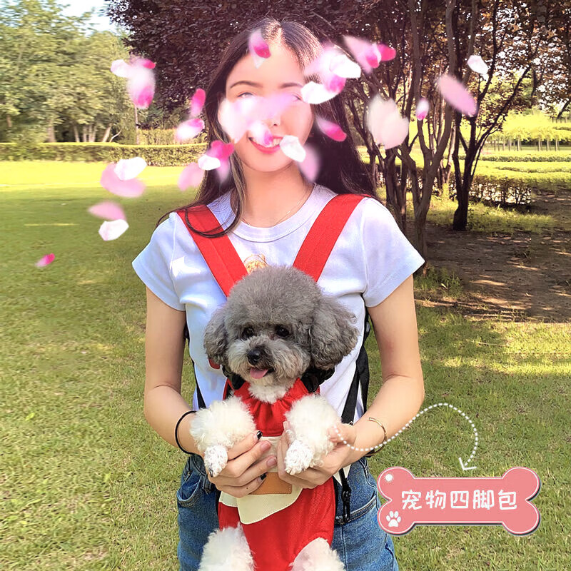元族宠物外出背包双肩包便携透气包可爱包猫咪狗狗专用四脚背带单肩包 红白 3XL-建议【18-20斤】