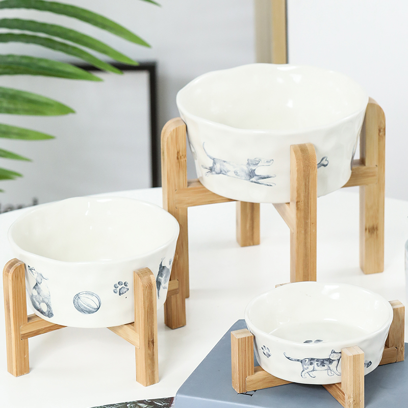 狗碗陶瓷护颈椎大号狗食盆大型犬餐具饮水碗猫碗架子狗饭碗猫餐桌