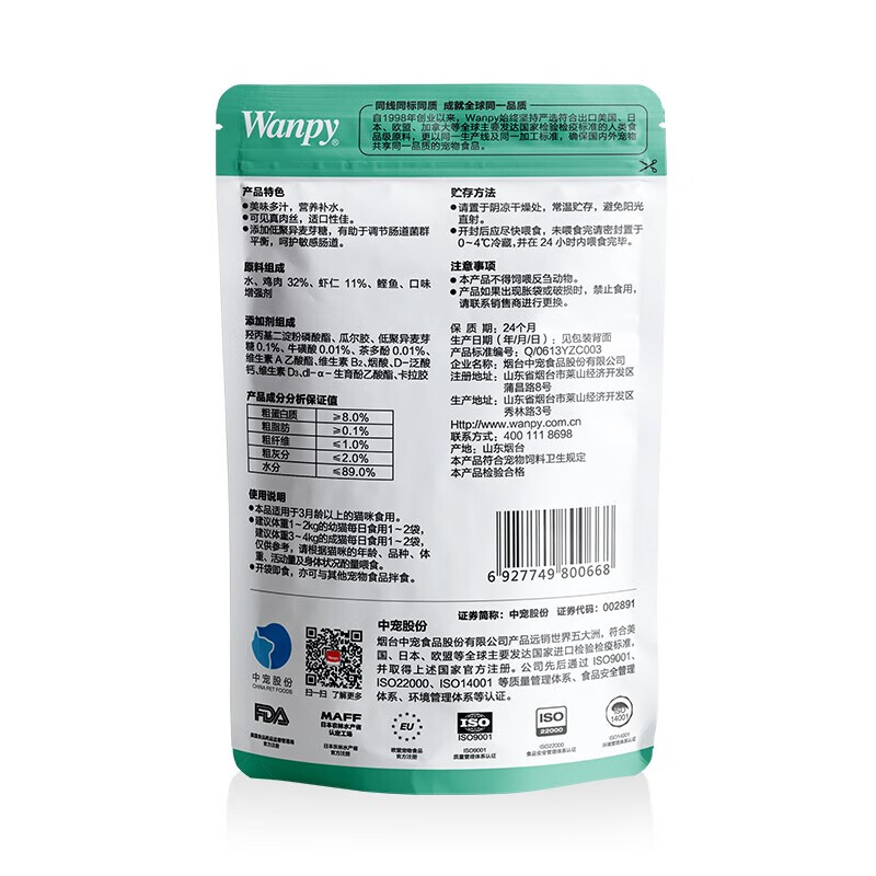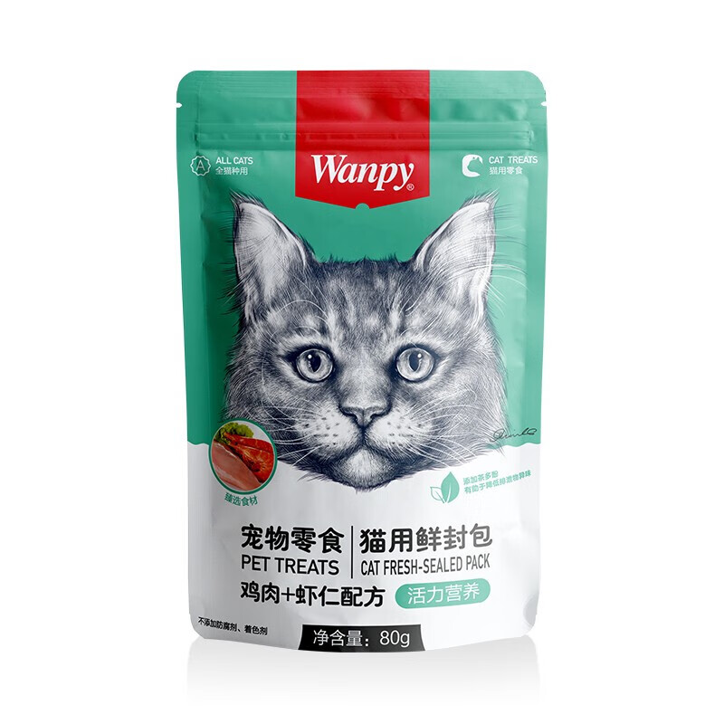 顽皮鲜封包猫宠物猫湿粮猫咪零食猫罐头猫零食幼猫成猫拌饭湿粮猫粮混合 鸡肉 虾仁80g*10袋