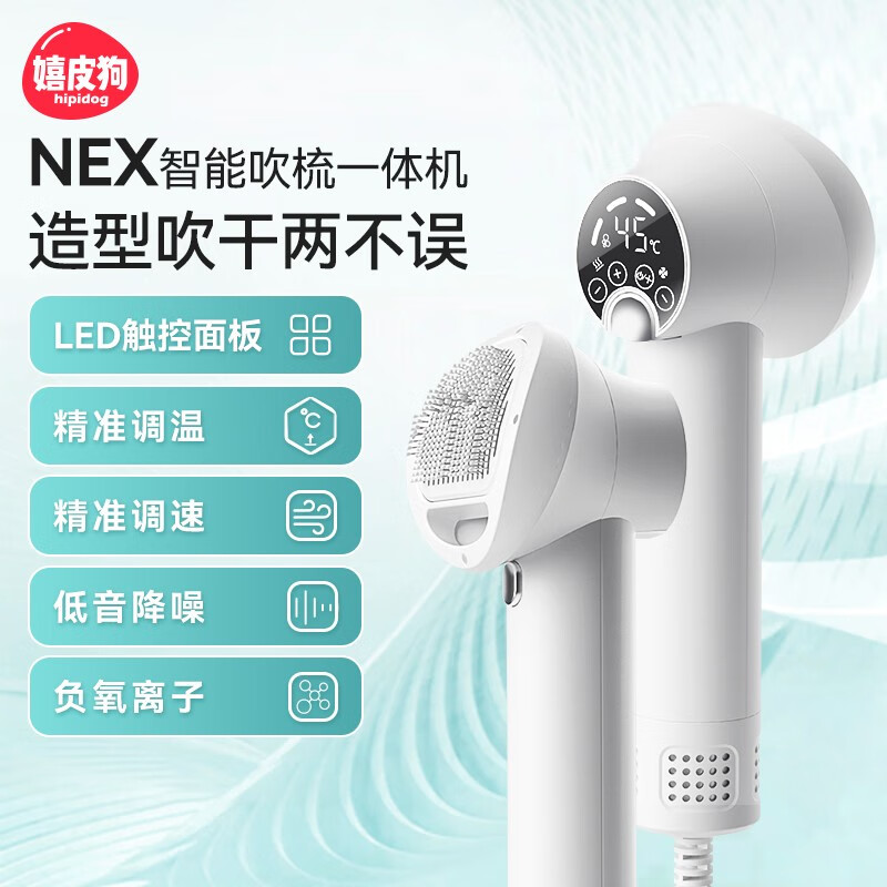 嬉皮狗(hipidog)宠物吹风机拉毛一体狗狗吹毛神器猫咪梳毛速干泰迪洗澡小型犬专用 【简约白】NEX智能吹梳一体机