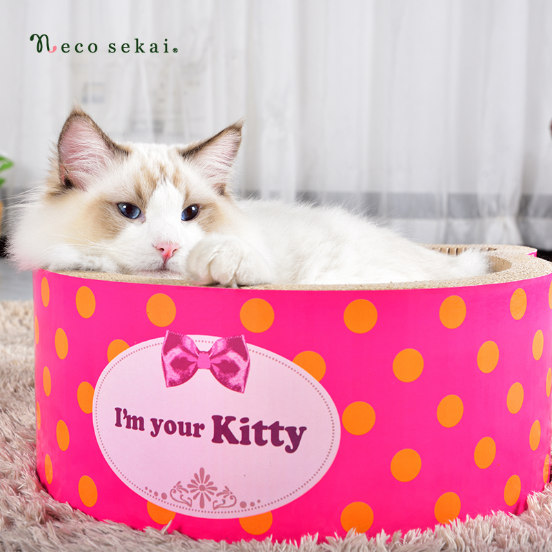 Necosekai猫咪世界瓦楞纸可爱猫抓板猫窝猫床宠物用品磨爪可抓可躺送木天蓼 猫脸水珠
