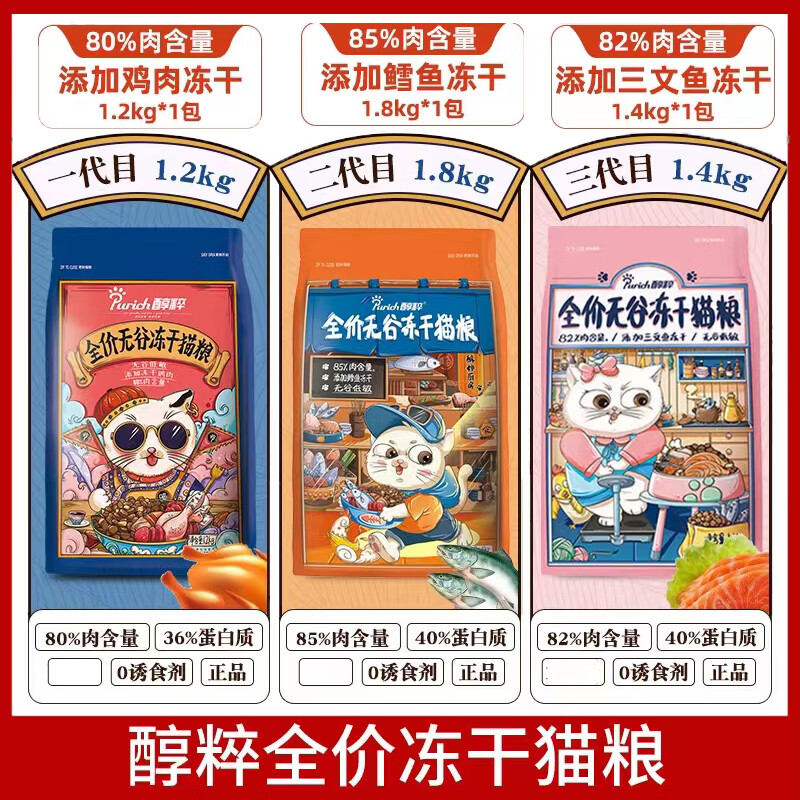 醇粹猫粮2.4kg鳕鱼冻干全价低敏三文鱼鸡肉冻干成幼猫粮 2.4k.g添加冻干鳕鱼(80%含肉量) 0lb