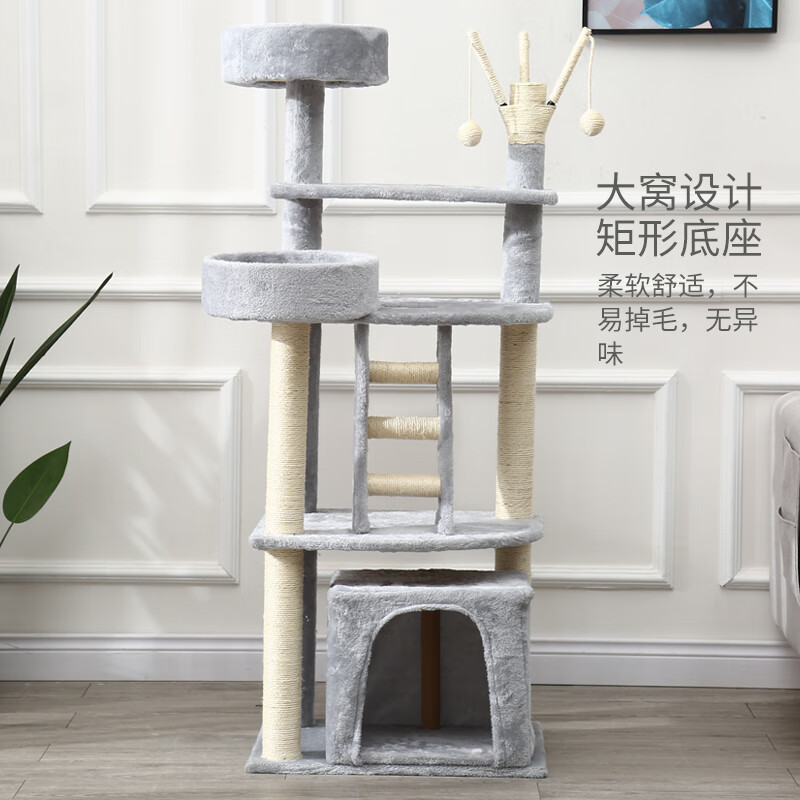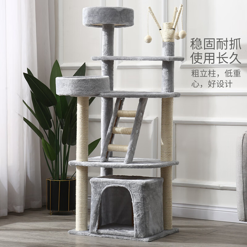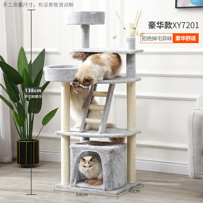 新越昌晖 1.38米猫爬架大型猫窝宠物猫玩具 耐磨猫抓板猫爬柱猫咪跳台立式猫架子 豪华款XY7201