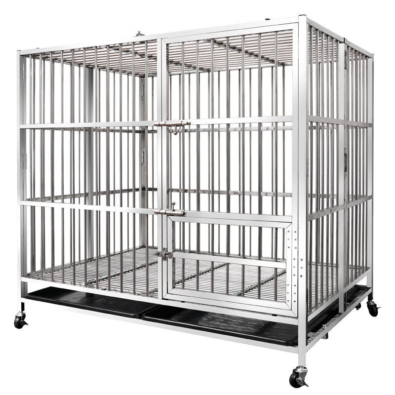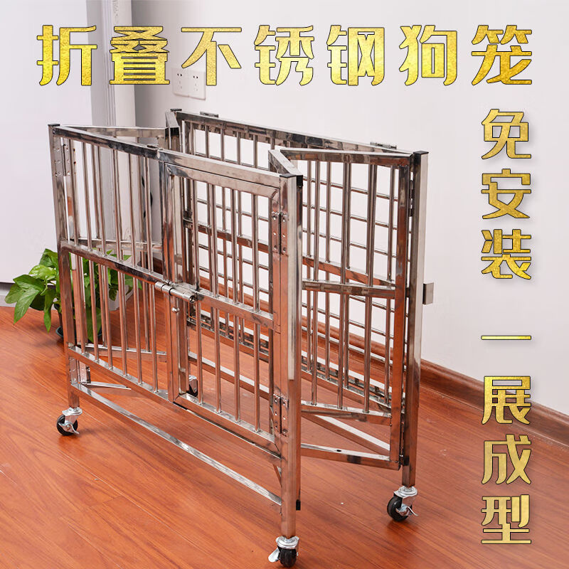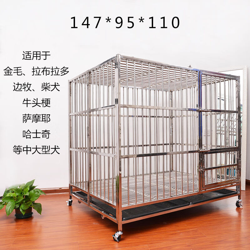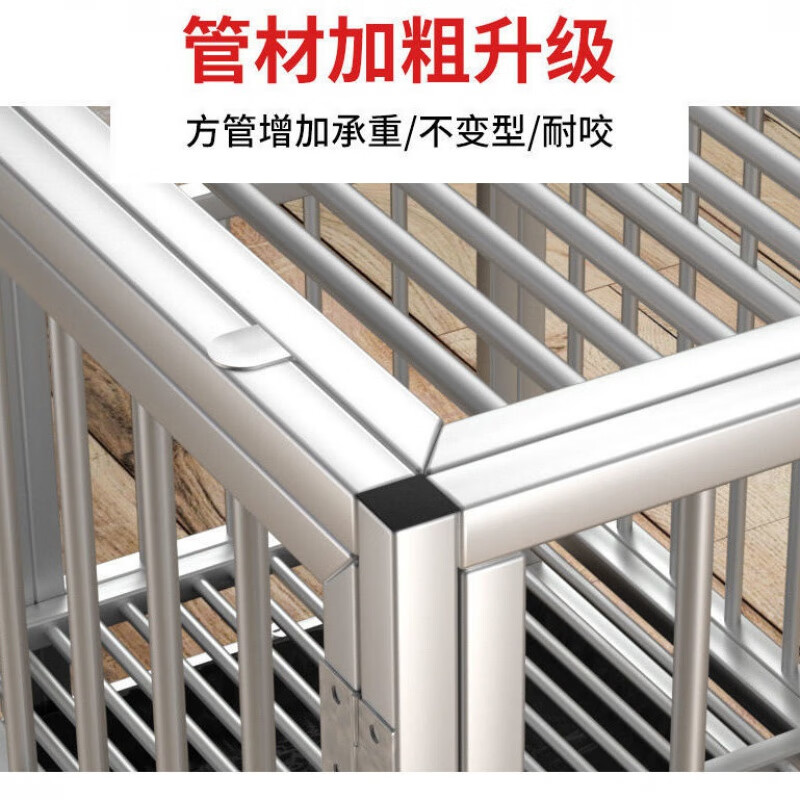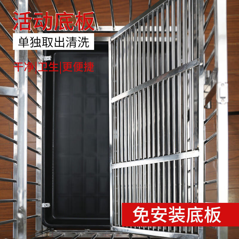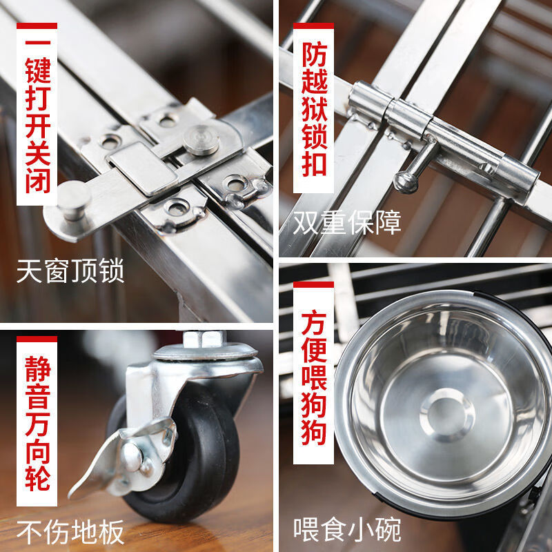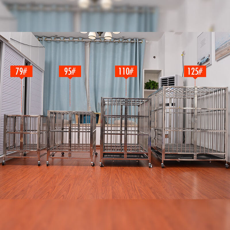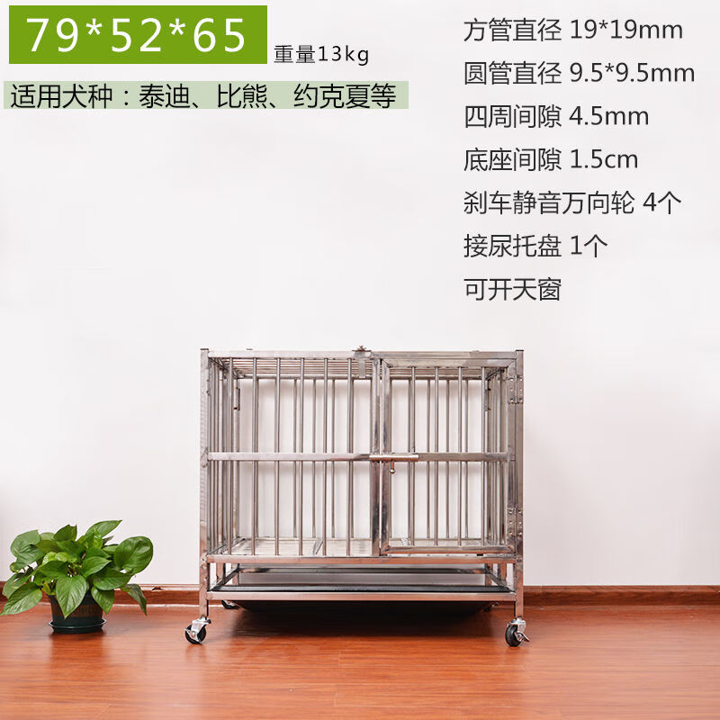 HKML*加粗不锈钢狗笼子小中大型犬拉布拉多折叠宠物金毛狗笼室内带厕所 长79*宽52*高65【没狗碗】 折叠款 碗 托盘
