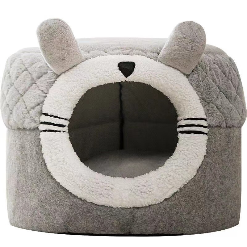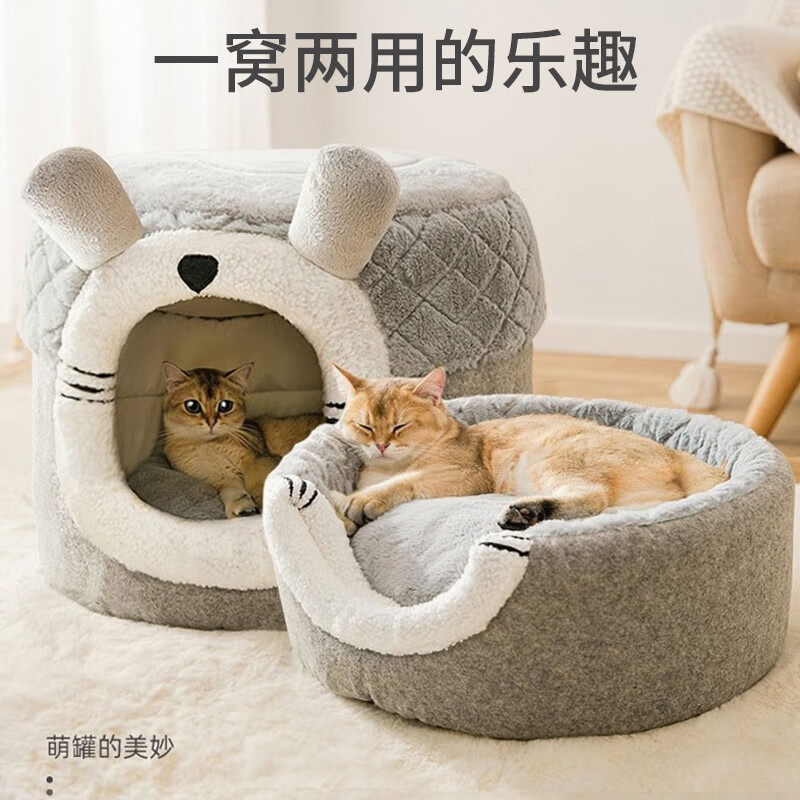 爱它乐 猫窝封闭式冬天保暖狗窝小型犬冬季猫狗窝加厚长毛绒泰迪狗狗窝宠物窝毛绒猫窝 双耳猫窝S