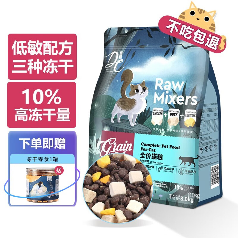帝熙(DC)全价冻干三拼猫粮宠物主粮离乳期奶糕幼猫成猫全价天然无谷低敏粮 全价猫粮【全年龄段】8kg