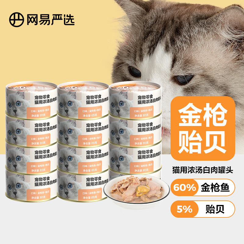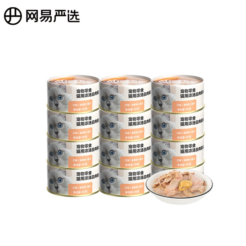 网易严选 猫用罐头 猫咪零食湿粮大块肉成幼猫营养补钙增肥 金枪鱼贻贝口味 85克*12罐