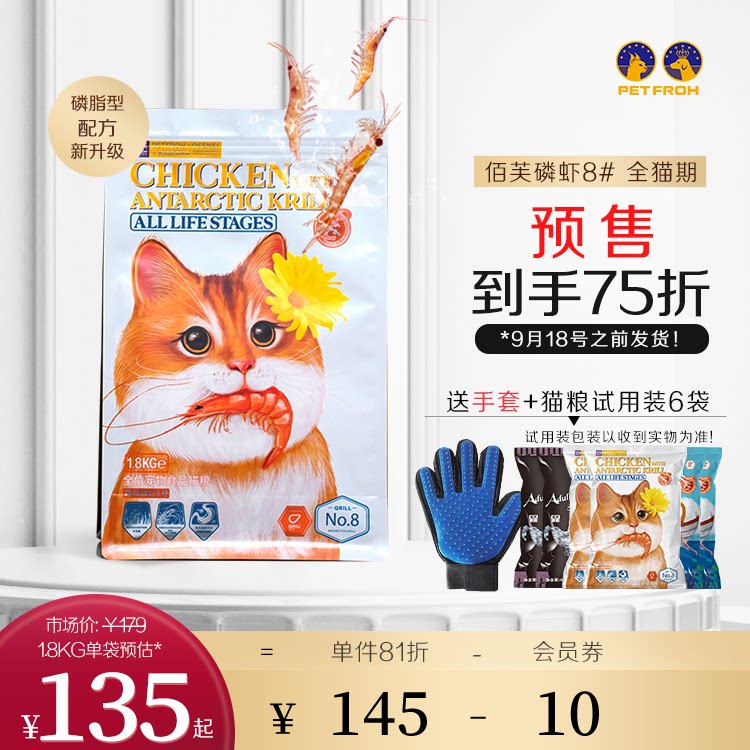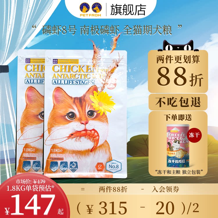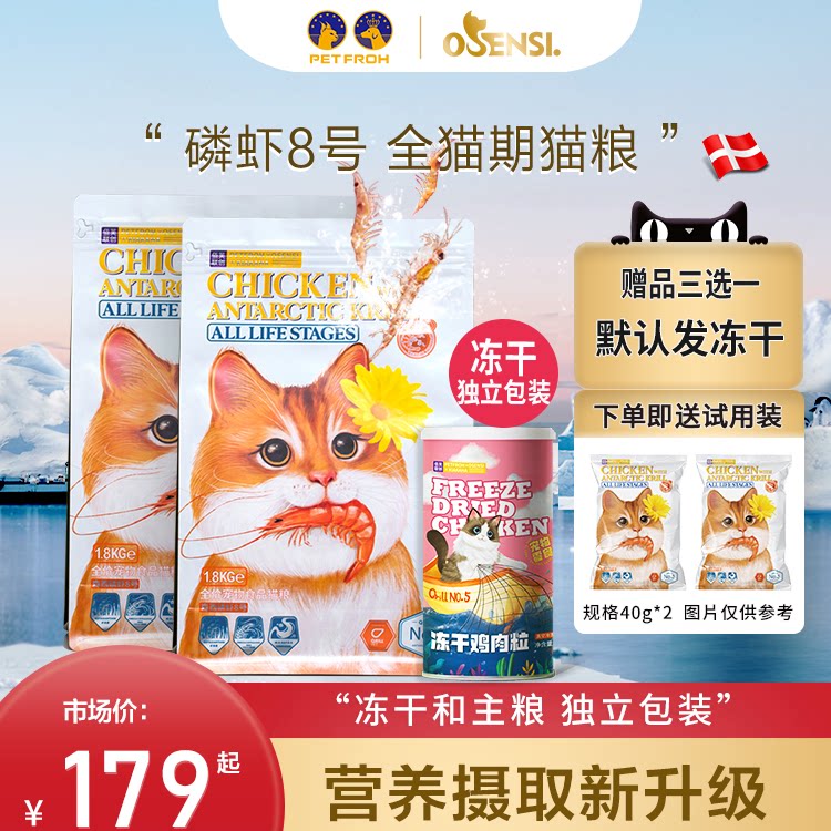 佰芙森西磷虾8号全价全期猫粮幼猫成猫通用型美毛1.8kg/6kg