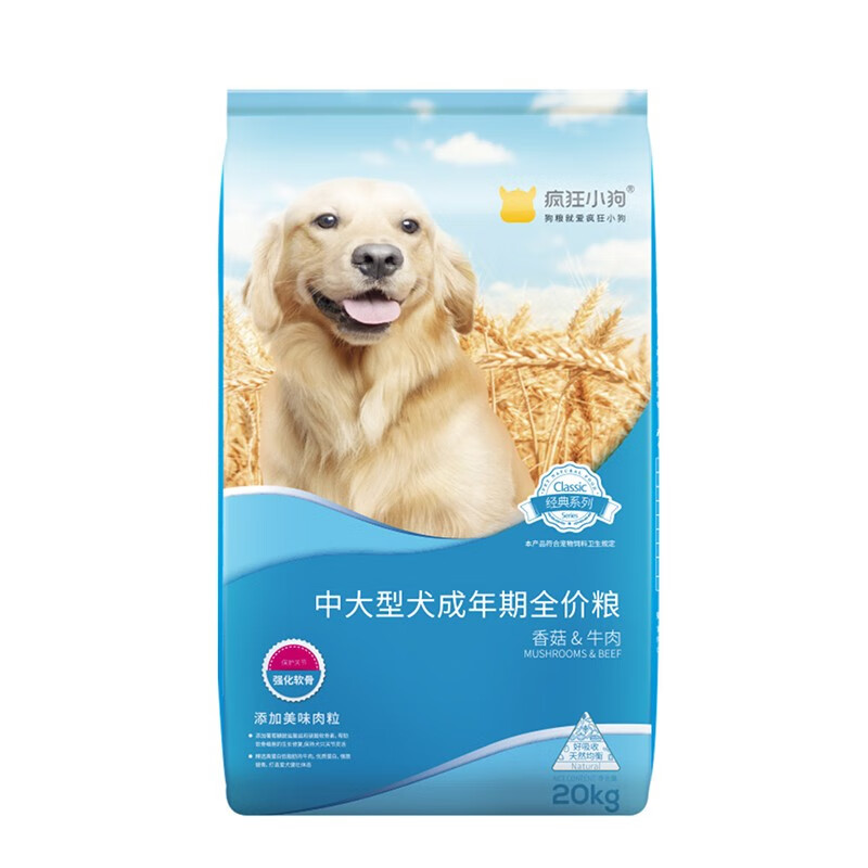 疯狂小狗 成犬狗粮金毛拉布拉多萨摩耶边牧阿拉斯加 宠物20kg犬粮 40斤牛肉味