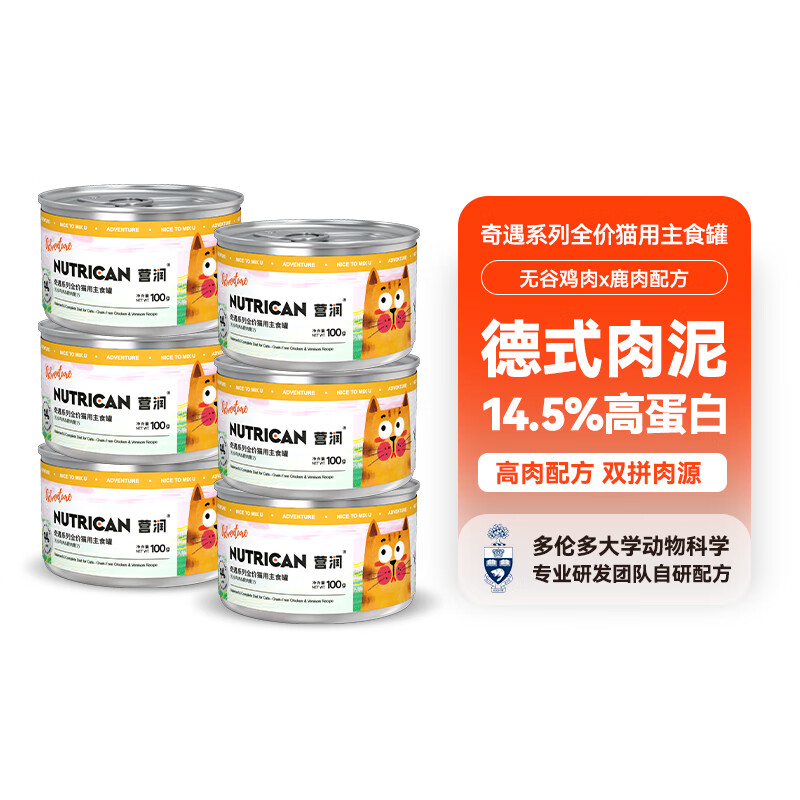 营润猫罐头 奇遇系列 全价成猫幼猫主食罐头 宠物猫咪零食湿粮100g 无谷鸡肉